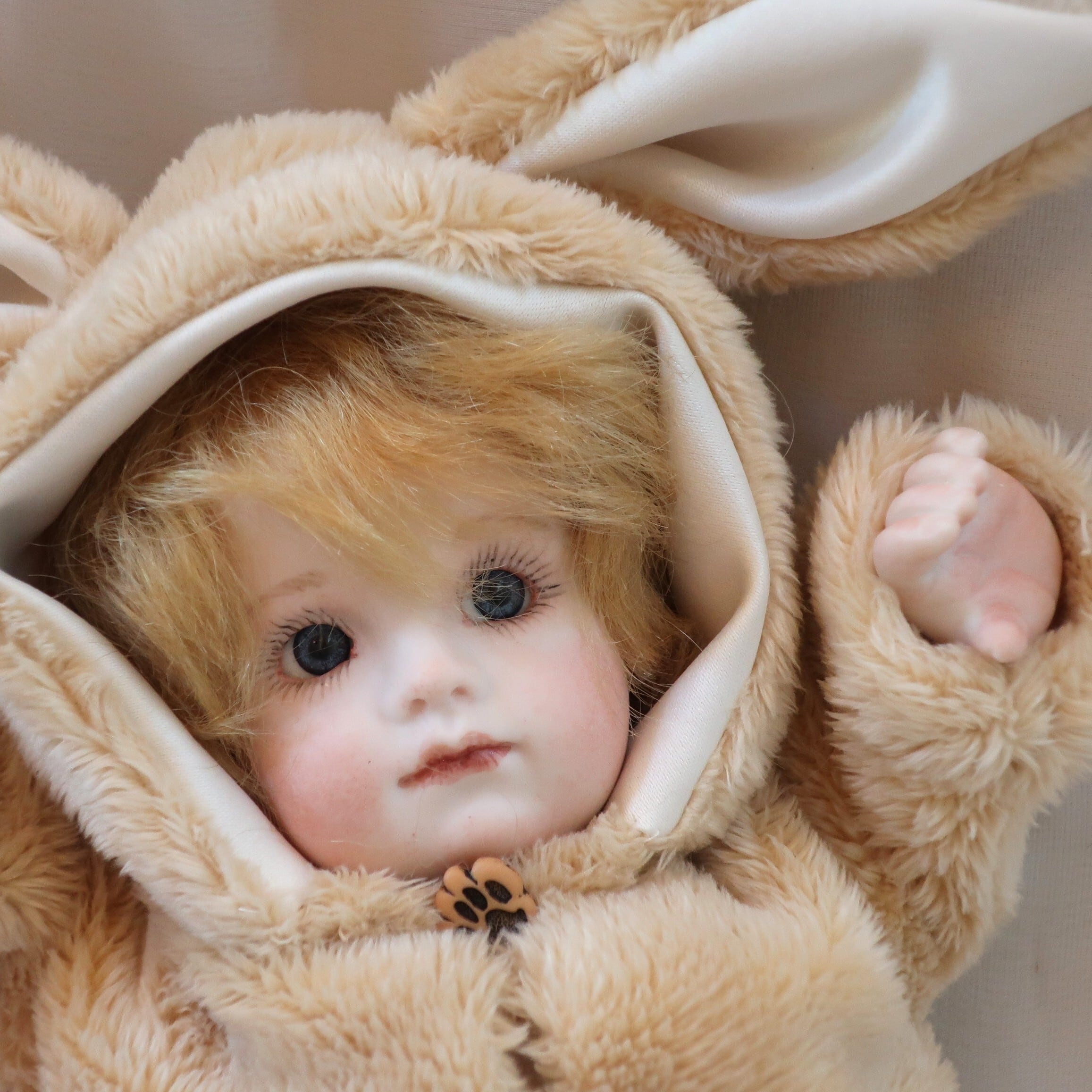 創作人形作家 三輪輝子の作品の中でもこの赤ちゃん人形<SB>シュガーベビーは、愛らしい表情に癒されるとコレクションしているファンの方も多い定番人気の作品です。