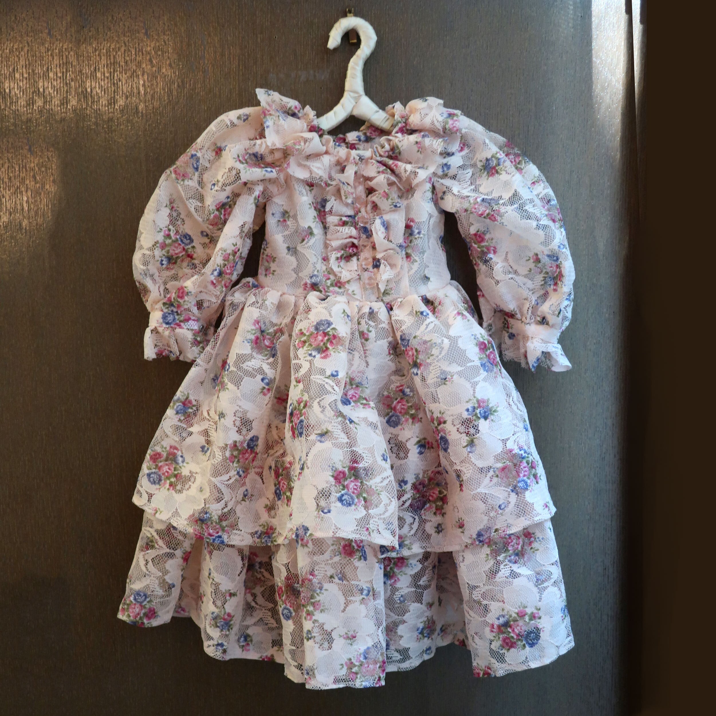 ミワドール工房制作・花柄プリントレースのドレス(45~60cm前後の人形用)
