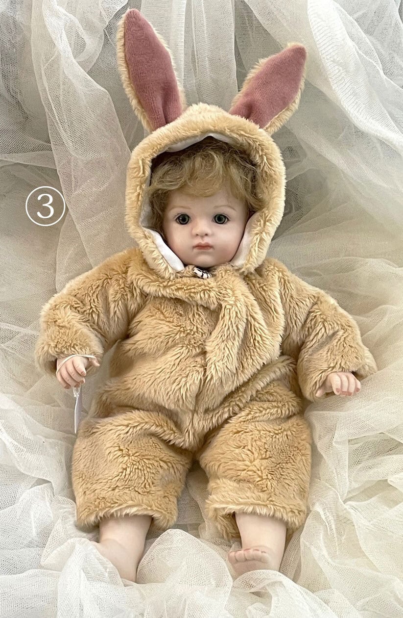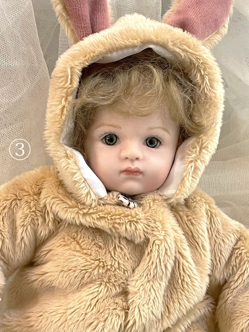 こちらはウサギの着ぐるみ(着脱可)を着たベビーで、着ぐるみの中は通常のベビーと同じです。