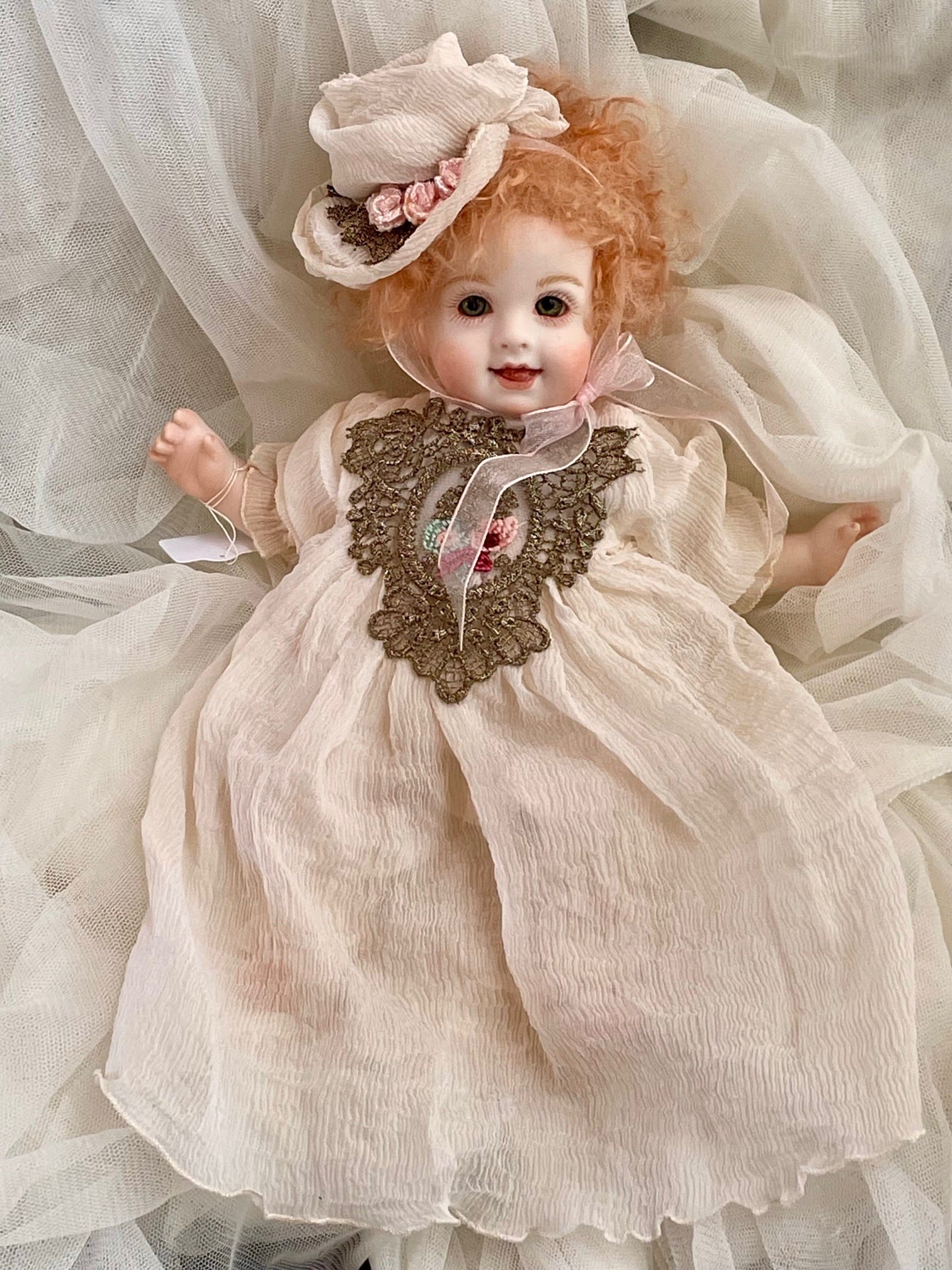 創作人形作家 三輪輝子の作品の中でもこの赤ちゃん人形<SB>シュガーベビーは、愛らしい表情に癒されるとコレクションしているファンの方も多い定番人気の作品です。