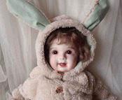 頭部、手足がビスクで胴体は布製(ペレットなど)で柔らかいため基本的に座って飾る人形になります。
