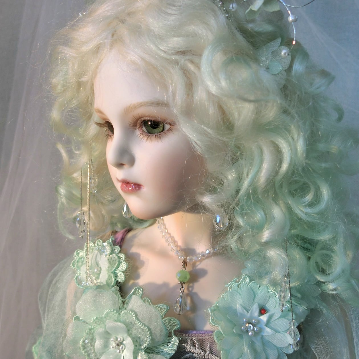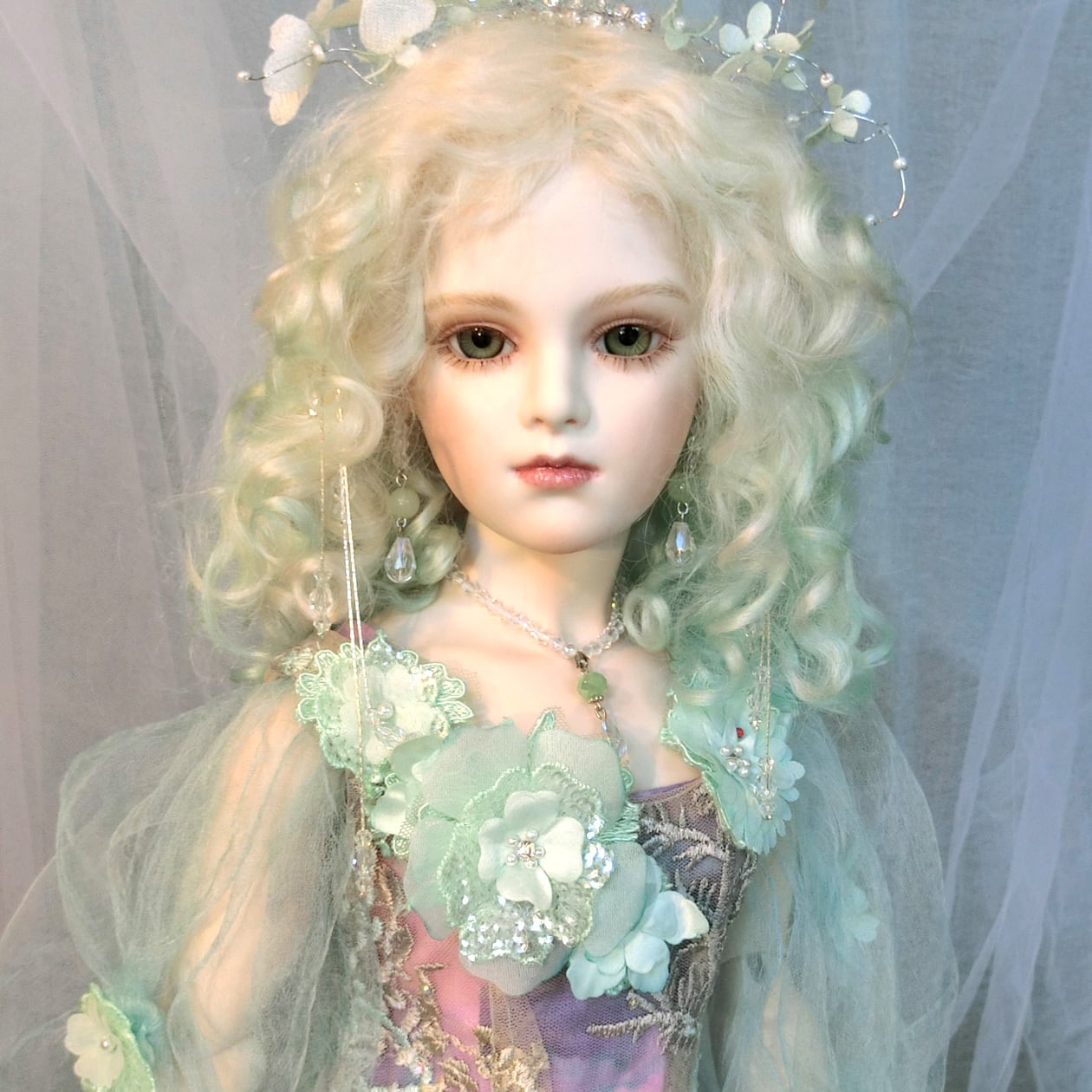創作人形作家 三輪輝子のオリジナルビスクドール「フローラルミント」です。