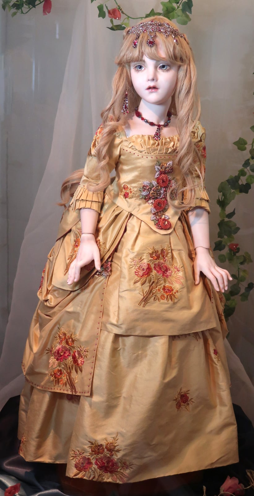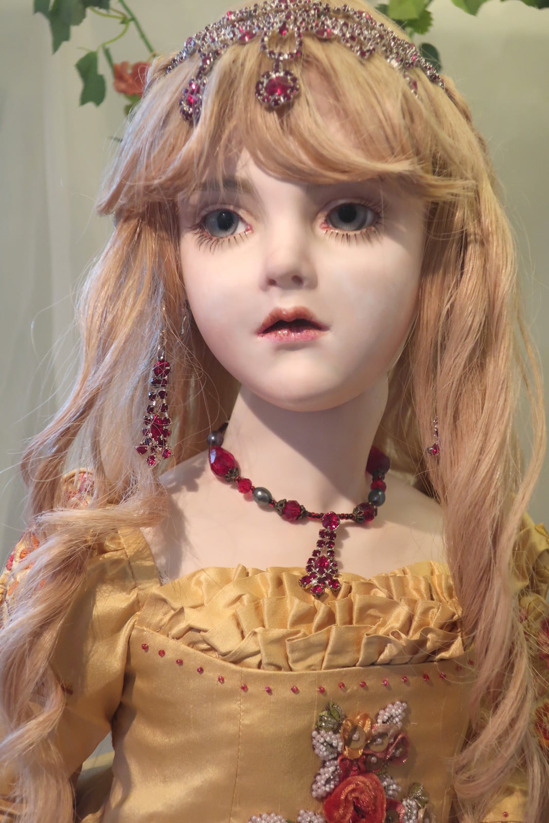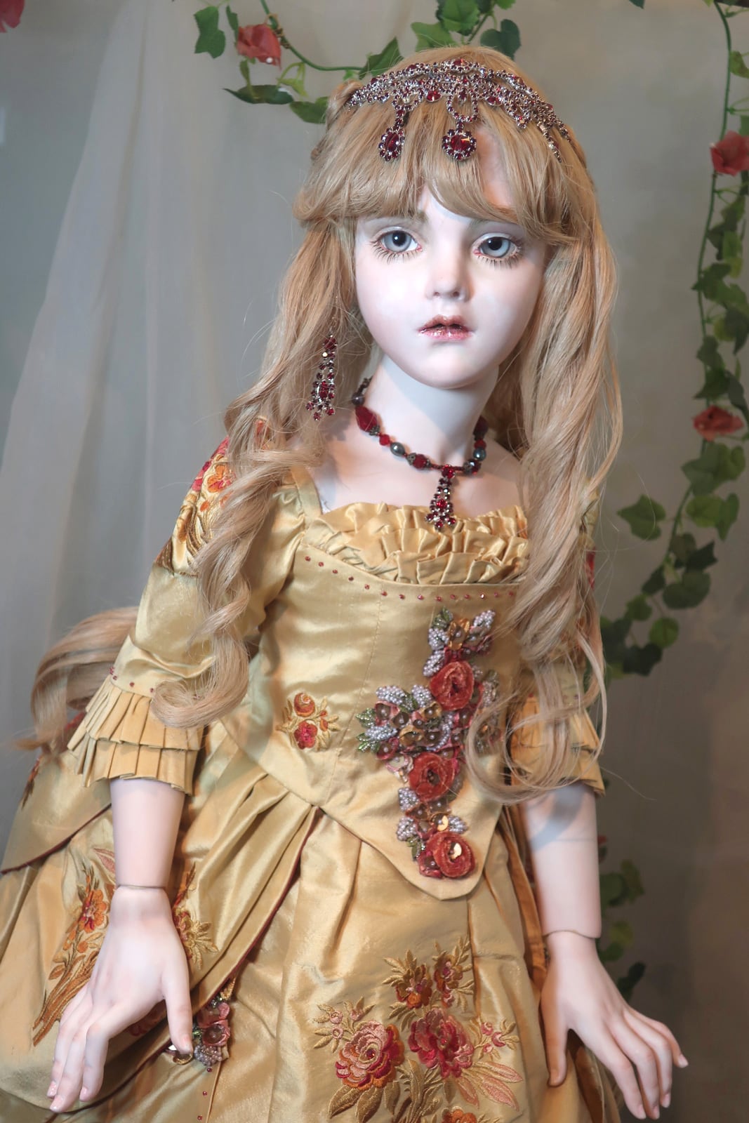作家がこだわりぬいて制作した渾身の一作とのことです、淡黄の刺繍入りの豪華なドレスに身を包んだ三輪作品伝統のお姫様スタイルの作品です。