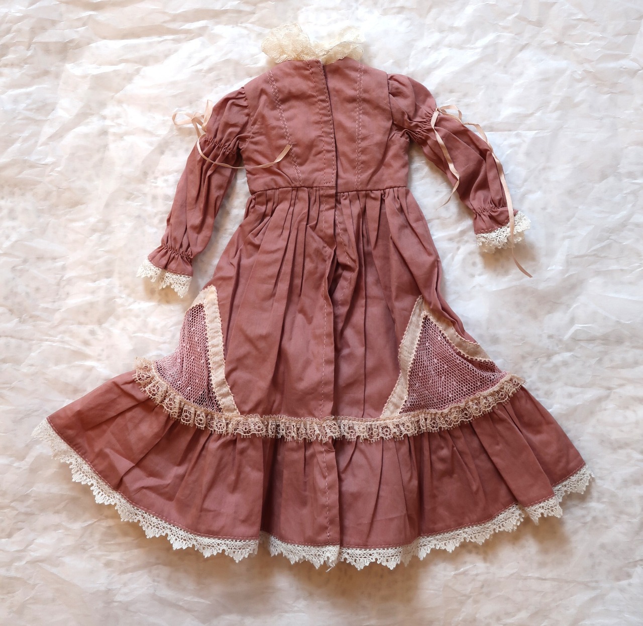 ドール用衣装 ダルピンクにレースのドレス(40cm前後細身)